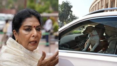 संसद भवन परिसर में कुत्ता लेकर पहुंच गईं सांसद, कहा- ‘असली काटने वाले पार्लियामेंट में बैठे हैं’