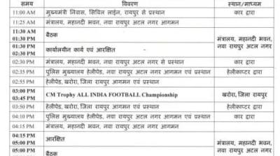 रायपुर। मुख्यमंत्री विष्णुदेव साय आज राजधानी रायपुर में आयोजित विभिन्न शासकीय और खेल कार्यक्रमों में हिस्सा लेंगे। तय कार्यक्रम के अनुसार, मुख्यमंत्री सुबह 11 बजे मंत्रालय पहुंचेंगे। यहां 11.30 बजे...