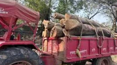 अवैध लकड़ी परिवहन पर कार्रवाई, सागौन-हल्दू से भरा ट्रैक्टर जब्त