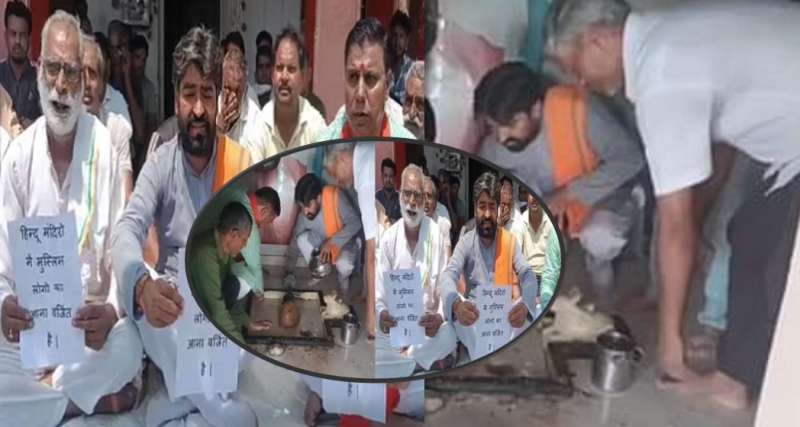 'कासिम' के पुजारी बनकर बैठने पर बवाल, हिंदू संगठनों ने मंदिर में किया हनुमान चालीसा का पाठ