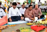 कृषि मंत्री नेताम ने मिट्टी एवं बीजों की पूजा की और ट्रैक्टर चलाकर बीजों की बुआई की