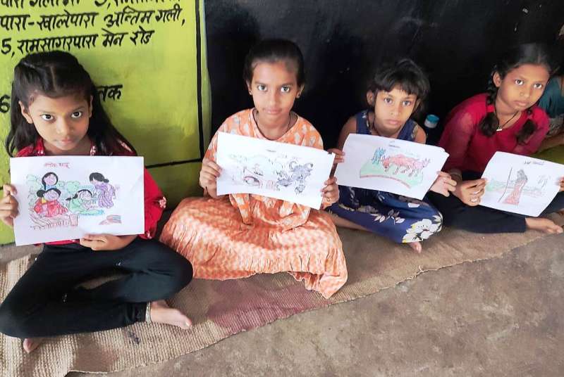 रायपुर : कहीं दीवारों पर तो कहीं किताबों पर नन्हे हाथों से ड्राइंग करते दिखाई दे रहे हैं बच्चे। कोई गा रहा है, कोई डांस कर रहा है और कोई अभिनय। पत्तों से कलाकारी, सब्जियों से चित्रकारी, रंगीन चावल की कला, मिट्टी से खिलौना निर्माण, धागे से डिजाइन बनाना और मुखौटा निर्माण जैसी रोचक गतिविधियों में बच्चे डूबे हुए हैं। अलग-अलग भाव के साथ बच्चों के चेहरे पर विजय मुस्कान दिखाई दे रही है।
